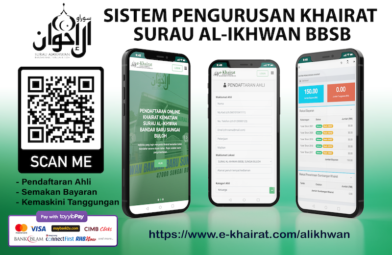 Anda boleh klik pautan pendaftaran ahli dan mengisi maklumat anda. Anda perlu menunggu kelulusan dari pentadbir khairat terlebih dahulu sebelum yuran pendaftaran dan yuran tahunan dijelaskan.